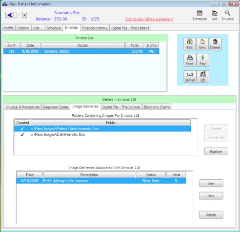 Simply choose which digital delivery method you prefer, Burn a CD or RIMS Internet Delivery. As soon as you “One Click” the RIMS delivery engine starts. Data begins streaming to the doctor’s office, in the background, while you proceed with other activity.
