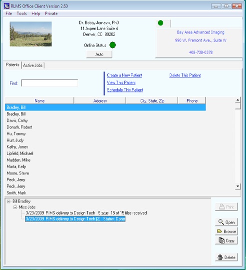 Working together, RLMS and RIMS synchronize lab operations. As soon as patient visits are complete and reports and images are ready, they are automatically collected and organized for delivery. With one click, choose to burn a CD or start Internet delivery directly to the doctor’s desktop. Internet delivery runs in the background. It is integrated with RLMS on-line scheduling, but it can be licensed and used independently. Using either digital delivery method, the lab has a single database of files that link business information with images, delivery and reporting data.